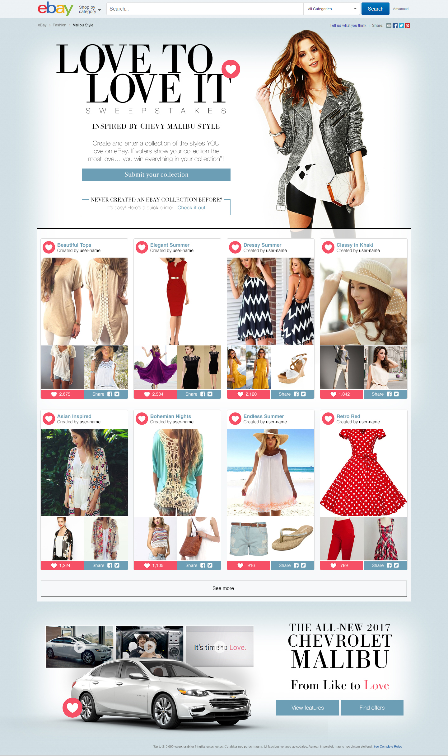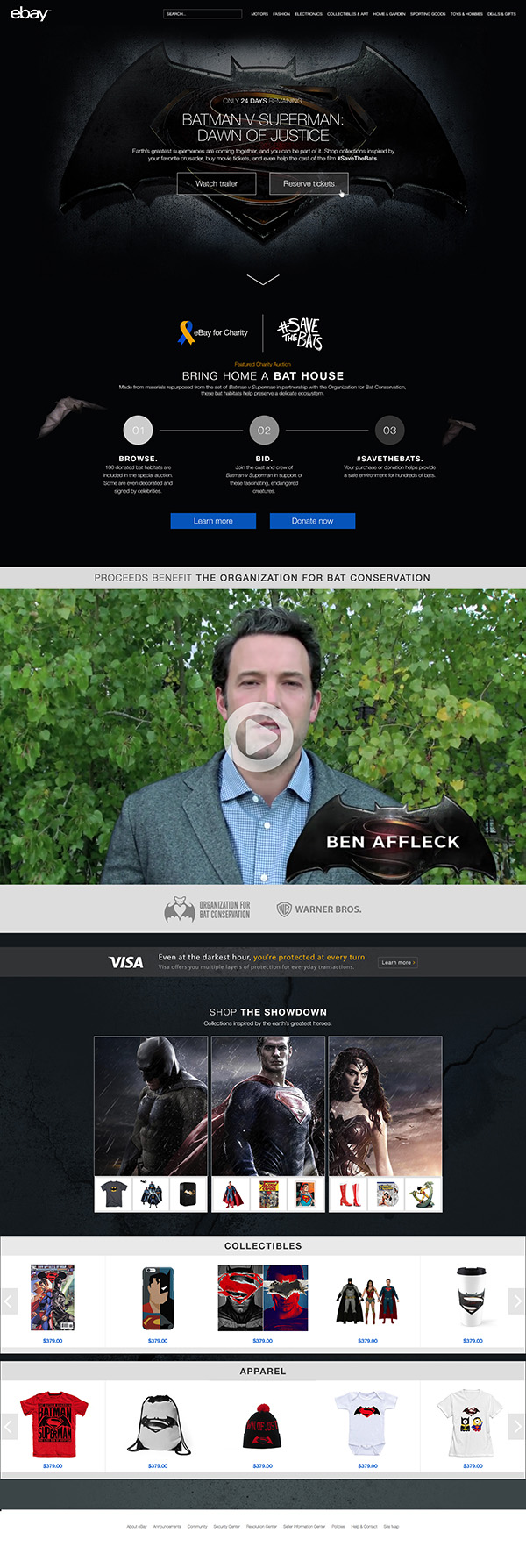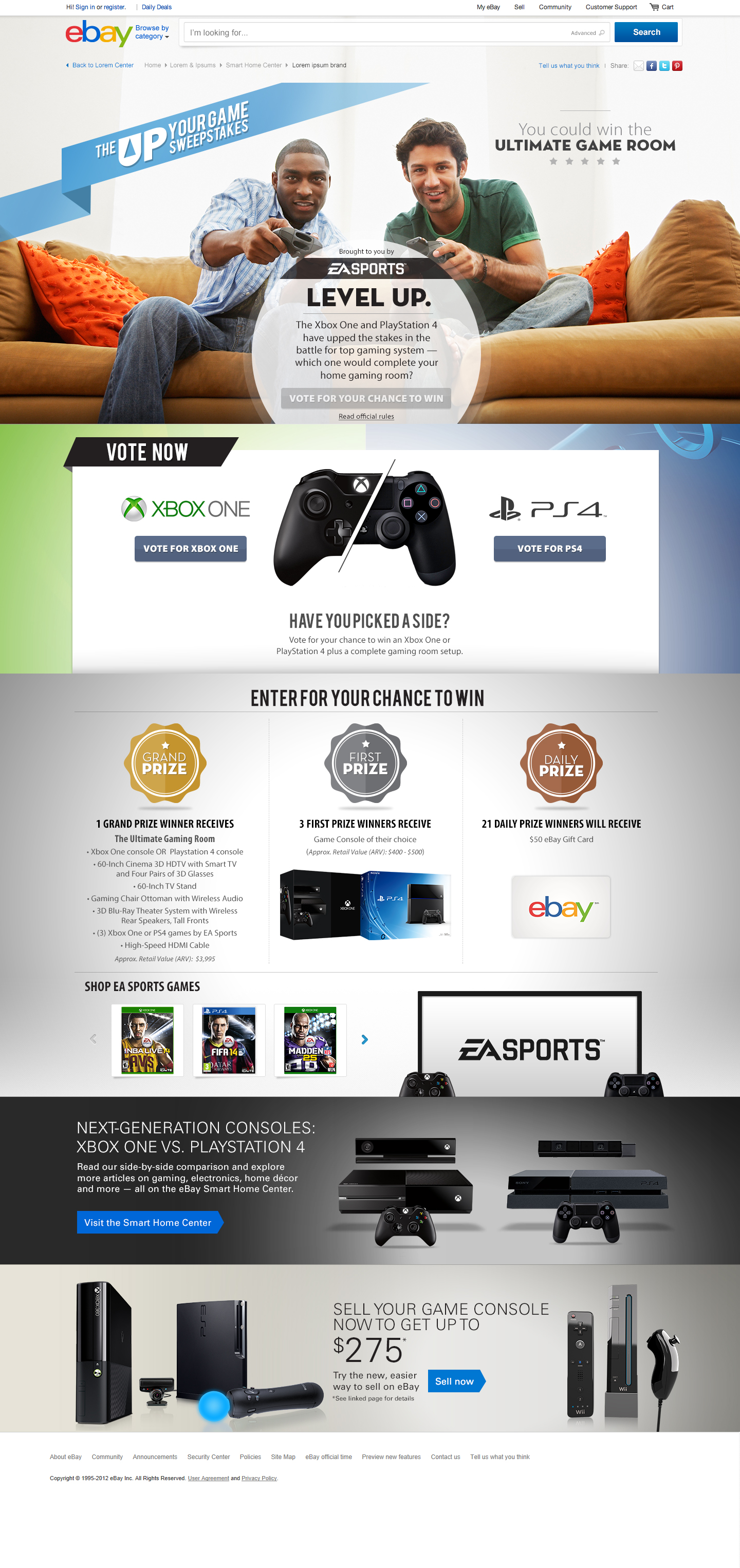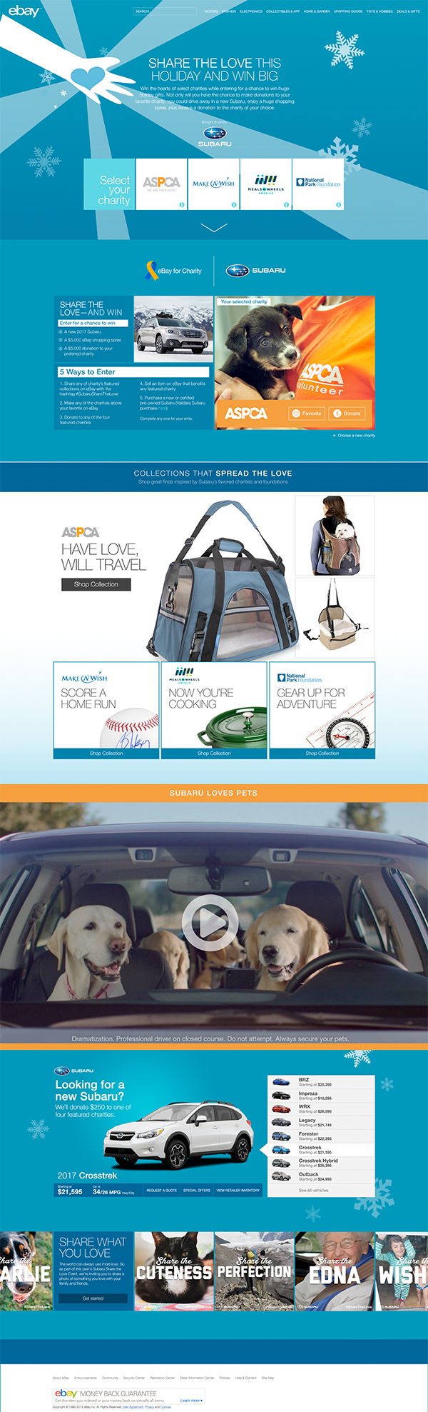 Across multiple campaigns for eBay’s ecosystem of national brands, I designed and directed landing pages that supported a wide variety of initiatives. These included sweepstakes, charity partnerships, curated product collections, branded storefronts, and content hubs that extended the shopping experience with value-driven storytelling. Each project required tailoring the user experience to fit the campaign’s unique objectives while maintaining consistency with eBay’s broader digital environment.