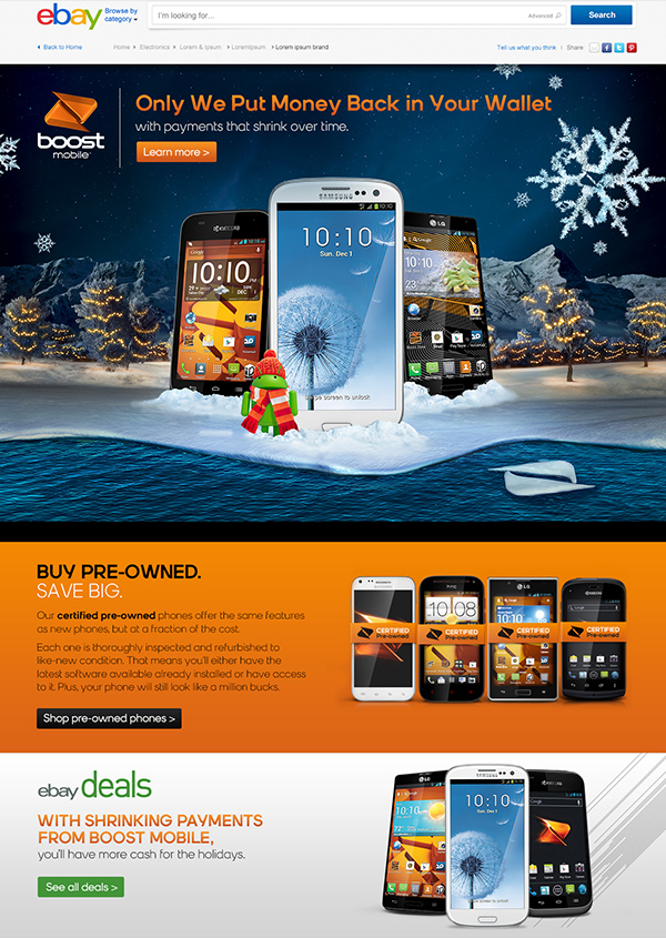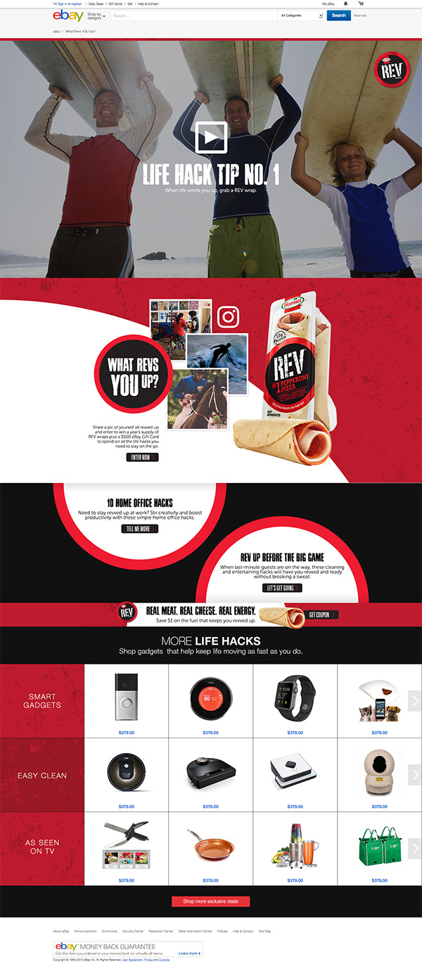 The landing pages gave national brands a platform to activate their campaigns within eBay’s ecosystem while providing users with engaging, content-rich experiences. By combining functional campaign elements with branded storytelling, these projects reinforced my ability to adapt across campaign types and deliver designs that drive both engagement and trust.