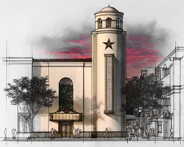Working closely with the founder, I explored how to visually connect the theatre to both the golden age of cinema and the cultural roots of Florida. The goal was to merge the Spanish mission style prominent in the state’s architecture with the elegance of art deco—a design direction that could set The Kavalier apart while grounding it in local character. My role expanded into creative consultation, providing input on how branding could extend seamlessly into environmental design, from signage to the theatre’s architectural expression.
